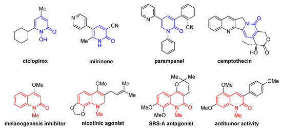 Natural and synthetic aza-heterocycles represent an important class of organic compounds [1,2,3,4,5]. Among the large number of aza-heterocycles available, pyridones and quinolones, both of which have a common six-membered aza-framework, exhibit a wide range of pharmacologically important activities (Figure 1) [6,7,8,9,10]. Therefore, various methods for the preparation of structurally diverse pyridones and quinolones have been studied in detail [6,11,12,13,14,15,16,17,18,19,20,21].