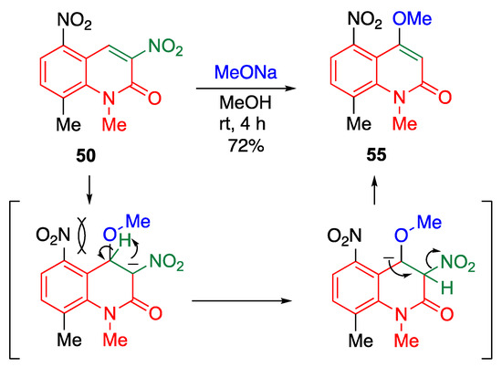 cine-Substitution of 3,5-dinitro-2-quinolone 50 by sodium methoxide.