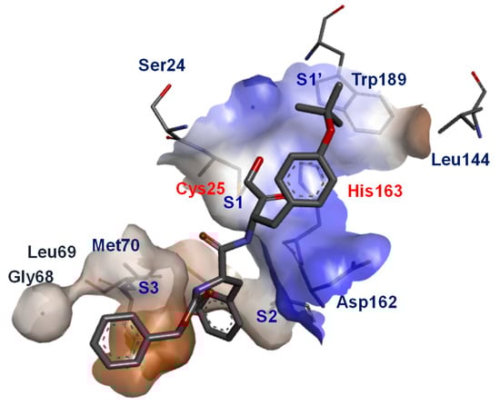 Notably in a seminal study, Katanuma et al. developed several cathepsin L-selective E-64 analogs (Cathepsin L Inhibitor by Katunuma: CLIK) with the help of computational modeling based on the stereo-structure [101]. Three of the developed CLIK inhibitors were hydrolytically stable and showed highly selective inhibition for hepatic cathepsin L in vivo. Further, they elucidated the inhibition mechanism of this class of compounds based on the crystal structure of papain-CLIK148 (Entry 3, Table 2) complex [102]. This crystal structure revealed that CLIK148, unlike E-64, binds to both prime and non-prime sites of the active site pocket. Notably, the specificity toward cathepsin L was attributed to the existence of phenylalanine residue at the S2 site, and a hydrophobic interaction mediated by N-terminal pyridine ring (Figure 3).