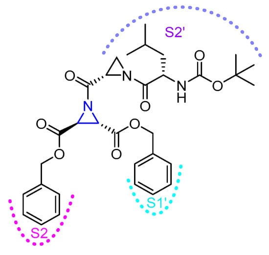 - Vicik, R.; Helten, H.; Schirmeister, T.; Engels, B. Rational design of aziridine-containing cysteine protease inhibitors with improved potency: Studies on inhibition mechanism. ChemMedChem 2006, 1, 1021–1028. [Google Scholar] [CrossRef] [PubMed]