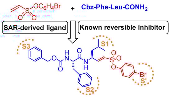 - Roush, W.R.; Gwaltney, S.L.; Cheng, J.M.; Scheidt, K.A.; McKerrow, J.H.; Hansell, E. Vinyl sulfonate esters and vinyl sulfonamides: Potent, irreversible inhibitors of cysteine proteases. J. Am. Chem. Soc. 1998, 120, 10994–10995. [Google Scholar] [CrossRef]