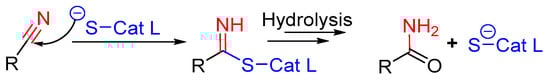 - Reddick, J.J.; Cheng, J.M.; Roush, W.R. Relative rates of Michael reactions of 2 ‘-(phenethyl)thiol with vinyl sulfones, vinyl sulfonate esters, and vinyl sulfonamides relevant to vinyl sulfonyl cysteine protease inhibitors. Org. Lett. 2003, 5, 1967–1970. [Google Scholar] [CrossRef] [PubMed]