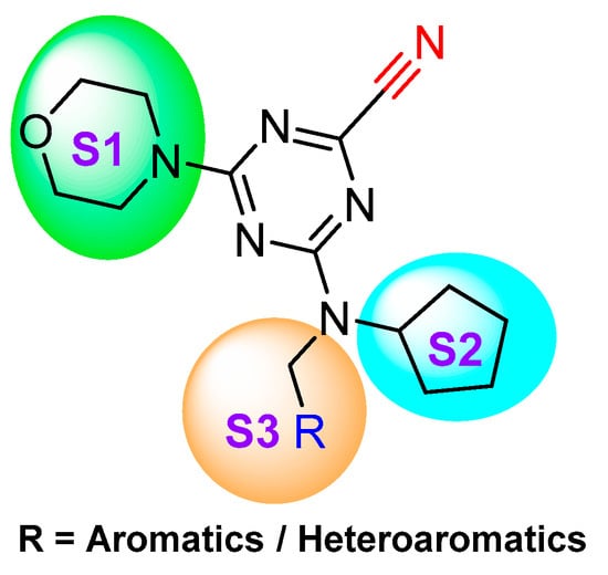- Giroud, M.; Ivkovic, J.; Martignoni, M.; Fleuti, M.; Trapp, N.; Haap, W.; Kuglstatter, A.; Benz, J.; Kuhn, B.; Schirmeister, T.; et al. Inhibition of the Cysteine Protease Human Cathepsin L by Triazine Nitriles: Amide⋅⋅⋅Heteroarene π-Stacking Interactions and Chalcogen Bonding in the S3 Pocket. ChemMedChem 2017, 12, 257–270. [Google Scholar] [CrossRef] [PubMed]
