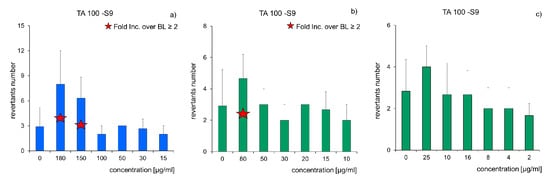 - Kamber, M.; Fluckiger-Isler, S.; Engelhardt, G.; Jaeckh, R.; Zeiger, E. Comparison of the Ames II and traditional Ames test responses with respect to mutagenicity, strain specificities, need for metabolism and correlation with rodent carcinogenicity. Mutagenesis 2009, 24, 359–366. [Google Scholar] [CrossRef] [PubMed]