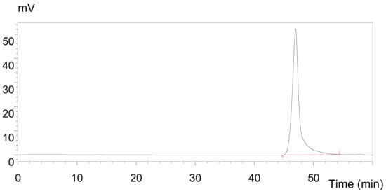 As shown in Figure 5, aAAP-1 exhibited a single and symmetric peak in the HPLC chromatography, indicating that aAAP-1 was a homogeneous polysaccharide. According to the regression equations (lgMw = −0.1973t + 12.456, R2 = 0.9957; lgMn = −0.1776t + 11.527, R2 = 0.9966), the Mw and Mn of aAAP-1 were 1538 and 1525 Da, respectively, with a retention time of 46.98 min, and Mw/ Mn=1.008, which represented the high homogeneity of aAAP-1.