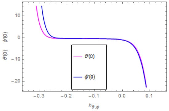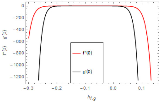 HAM guarantees the convergence of the series solution of the modeled problem. The auxiliary parameter plays an important role in adjusting the region of convergence of the series solution. Figure 2 indicates the curves of the velocities profiles. The auxiliary parameters and are and . Figure 3 indicates the curves of the temperature and concentration profiles. The auxiliary parameters and are and .