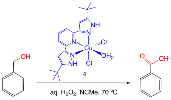 - Ünver, H.; Kani, I. Homogeneous oxidation of alcohols in water catalyzed with Cu(II)-triphenyl acetate/bipyridyl complex. Polyhedron 2017, 134, 257–262. [Google Scholar] [CrossRef]