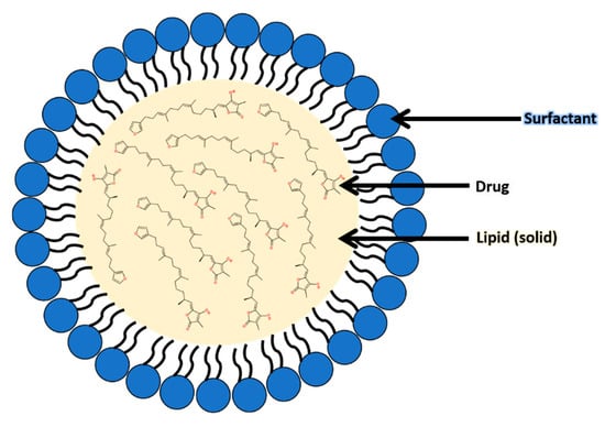 SLNs are nanometer sized particulate drug delivery systems, typically ranging in size from 50–100 nm. Such nanoparticle systems are an advancement over conventional drug delivery systems such as emulsions and liposomes [10]. SLNs consist of spherical bodies with a solid lipid core (within which the drug is located depending on its hydrophobicity or hydrophilicity) surrounded by a surfactant [11]. These particles offer several advantages including providing protection to compounds sensitive to unfavorable environmental factors such as moisture, light and pH which would result in degradation and a significant loss in biological activity [12]. Additionally, SLNs have also improved the biocompatibility and delivery of poorly water-soluble anticancer drugs such as paclitaxel and camptothecin [13].