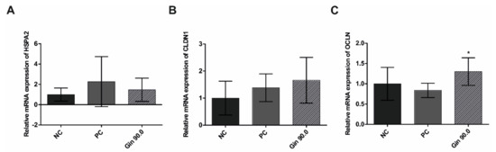4.3.2. Detection of HSP2A, CLDN1 and OCLN mRNA Expression by Quantitative Real-Time PCR