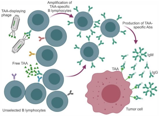 Due to their specific and often very high expression, TAAs are attractive targets for cancer therapy. Ways to trigger the production of anti-TAA Abs include administration of either full-length TAAs, their antigenic parts only, or TAA mimotopes (e.g., anti-idiotype Abs or peptides recognized by the anti-TAA Ab). There is a vast literature on phage display panning of either monoclonal or polyclonal Abs to identify TAA mimotopes, in some cases even without knowledge of the corresponding natural epitope (see, e.g., [28]).