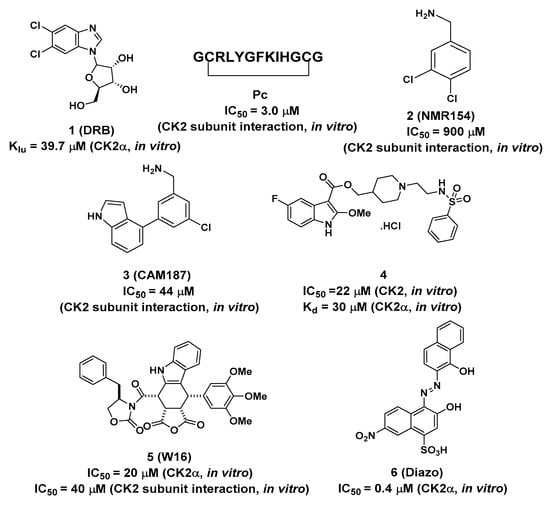 - Cozza, G. The development of CK2 inhibitors: From traditional pharmacoplogy to in silico rational drug design. Pharmaceuticals (Basel) 2017, 10, 26. [Google Scholar] [CrossRef]