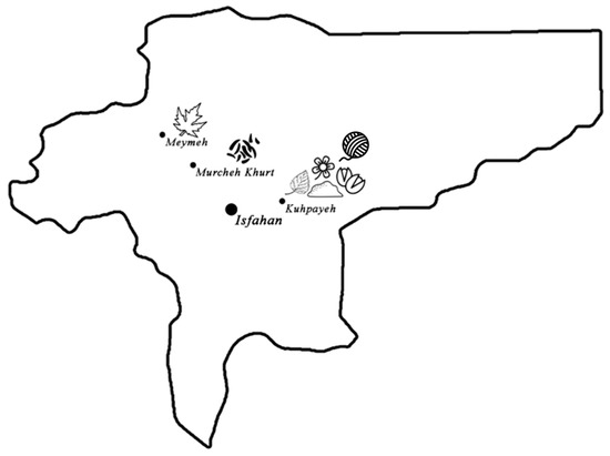 Geographical distribution of the collected plant sources used to dye yellow in Isfahan province, Iran [31].
