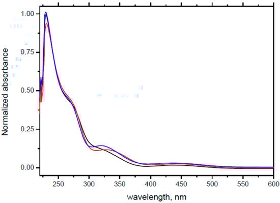 Electronic absorption (UV-Vis) spectra were recorded at room temperature on a Perkin-Elmer Lambda 35 spectrometer (PerkinElmer, Inc, Waltham, MA (Massachusetts), USA) using 10 mm quartz cells. Absorption spectra were registered with a scan speed of 480 nm/min, using a spectral width of 1 nm. All samples were prepared as solutions in dichloromethane with the concentrations ~10−5 mol L−1.