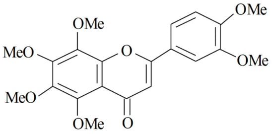 Chemical structure of 5,6,7,8,3′,4′-hexamethoxyflavone (nobiletin, NOB).