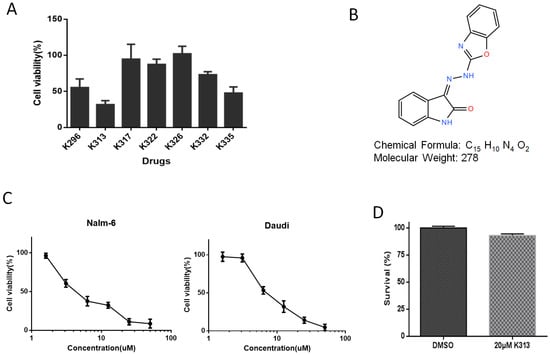 2.1. K313 Reduces the Viability of Nalm-6 and Daudi Cells without Affecting Normal Healthy PBMCs