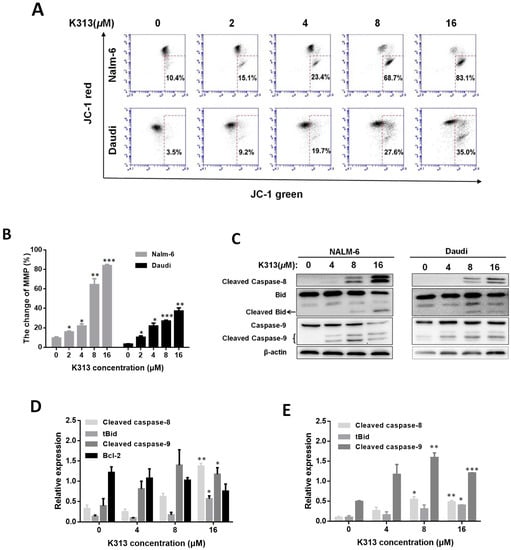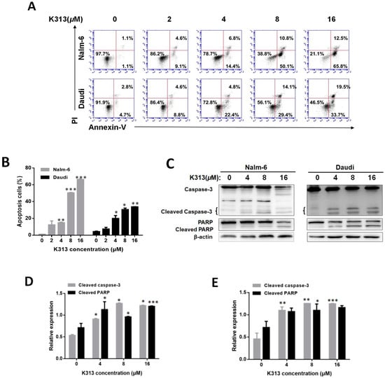 2.3. K313 Induces Apoptosis in Nalm-6 and Daudi Cells