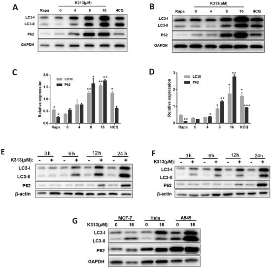 2.6. K313 Inhibits Autophagic Flux in Cancer Cells