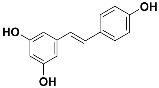 Trans-resveratrol (trans-3,5,4′-trihydroxystilbene, RSV) (Figure 1) is a triphenolic phytoalexin with potent antioxidant activity and is found in a variety of plant species, such as grapevines, mulberries, peanuts, and the dried roots and stems of Japanese knotweed (Polygonum cuspidatum). An increasing volume of research on RSV has revealed its diverse range of biomedical properties, which may indicate its use for the treatment of a variety of human diseases [1,2,3,4,5].