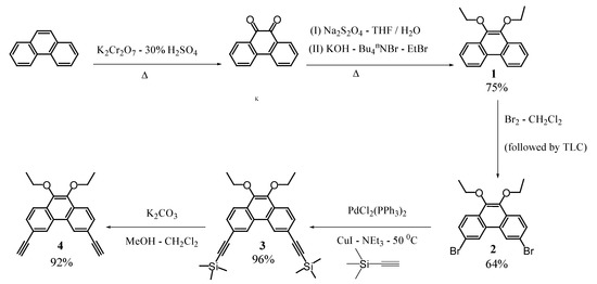 Synthesis of 3,6-diethynyl-9,10-diethoxyphenanthrene (4).