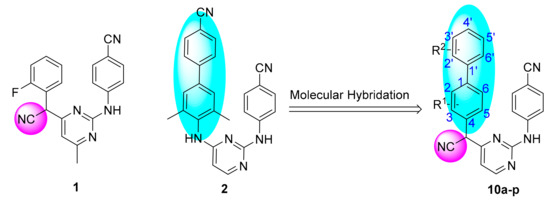 Design of Biphenyl-Substituted Diarylpyrimidines with a Cyanomethyl Linker as HIV-1 NNRTIs via a Molecular Hybridization Strategy