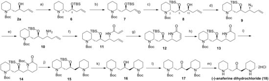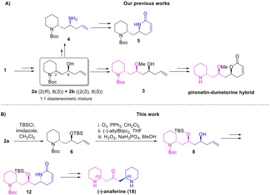 26]. In this way, the fundamental (–)-anaferine carbon skeleton, characterised by two nitrogen-containing hexacycles, connected by the 2-hydroxypropane linker and maintaining the (