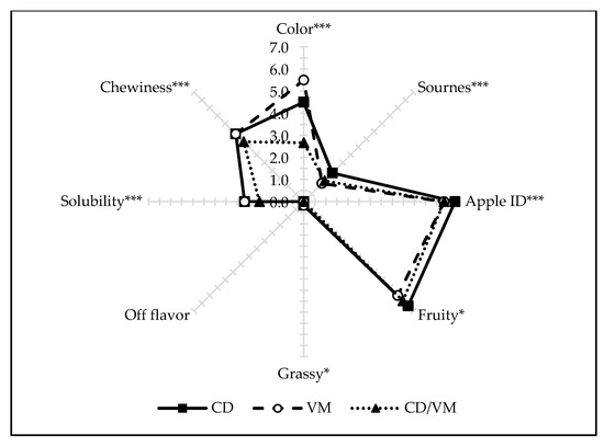 | CD/VM | 94.80 ± 0.16 b, B | 88.85 ± 0.53 a, A | 0.289 ± 0.01 b, A | 0.392 ± 0.01 c, B |