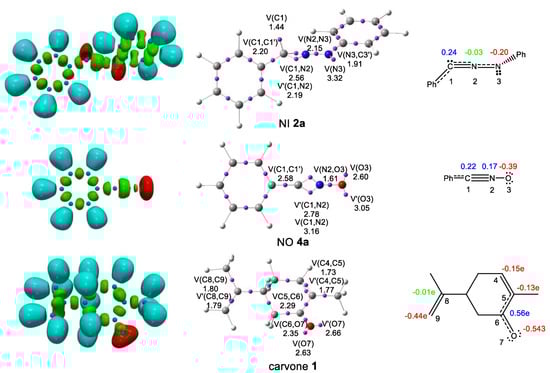 2.1. Topological Analysis of the Electron Localisation Function (ELF) and Natural Population Analysis (NPA) of Diphenyl-NI 2a, Phenyl-NO 4a and (R)-Carvone 1