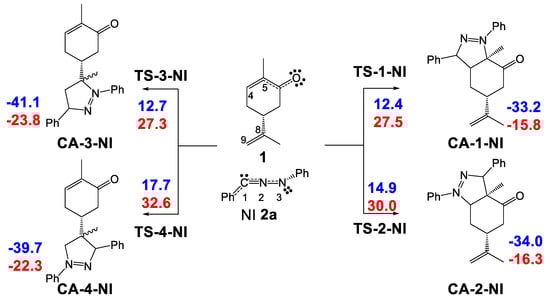 2.3.1. Study of the 32CA Reactions of Diphenyl NI 2a with (R)-Carvone 1
