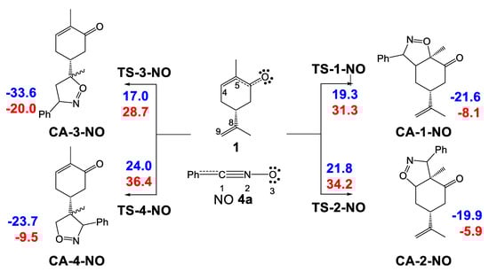 2.3.2. Study of the 32CA Reactions of Phenyl NO 4a with (R)-Carvone 1