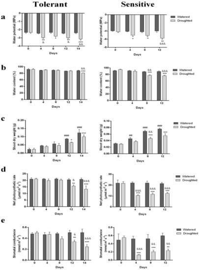 2.1. Physiological Parameters Affected by Long-Term Drought Stress