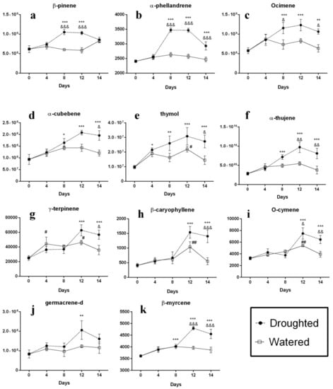 - Moradi, P.; Mahdavi, A.; Khoshkam, M.; Iriti, M. Lipidomics unravels the role of leaf lipids in thyme plant response to drought stress. Int. J. Mol. Sci. 2017, 18, 2067. [Google Scholar] [CrossRef]