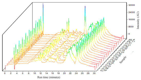 Overlap of chromatographic profiles of the obtained dried extracts.
