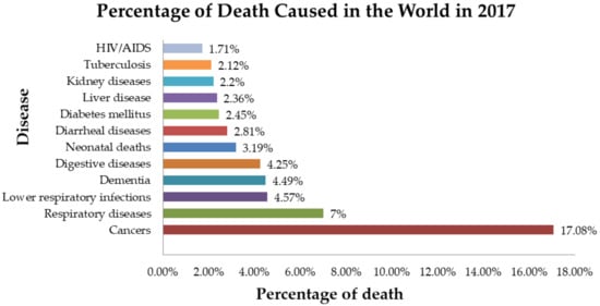 - Ritchie, H.; Roser, M. Causes of Death. Available online: https://ourworldindata.org/causes-of-death (accessed on 12 September 2019).