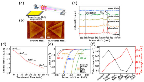 - Cheng, C.-C.; Lu, A.-Y.; Tseng, C.-C.; Yang, X.; Hedhili, M.N.; Chen, M.-C.; Wei, K.-H.; Li, L.-J. Activating basal-plane catalytic activity of two-dimensional MoS2 monolayer with remote hydrogen plasma. Nano Energy 2016, 30, 846–852. [Google Scholar] [CrossRef]