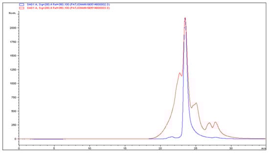 HP-SEC analyses were performed on an Agilent 1100 Series HPLC instrument equipped with a G1315B DAD-detector, 2 × Jordi Gel DVB 500A (300 mm × 7.8 mm) columns (Columnex LLC, New York, NY, USA; 40 °C), and a 50 mm × 7.8 mm guard column. One percent of AcOH in THF served as eluent at a flow rate of 0.8 mL/min.