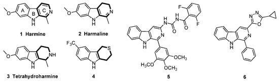 - Song, H.; Liu, Y.; Liu, Y.; Wang, L.; Wang, Q. Synthesis and antiviral and fungicidal activity evaluation of β-carboline, dihydro-β-carboline, tetrahydro-β-carboline alkaloids, and their derivatives. J. Agric. Food Chem. 2014, 62, 1010–1018. [Google Scholar] [CrossRef] [PubMed]