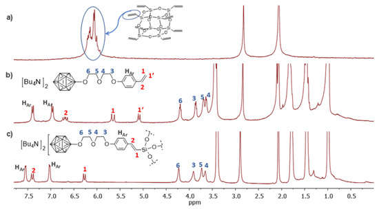 - Cabrera-González, J.; Sánchez-Arderiu, V.; Viñas, C.; Parella, T.; Teixidor, F.; Núñez, R. Redox-Active Metallacarborane-Decorated Octasilsesquioxanes. Electrochemical and Thermal Properties. Inorg. Chem. 2016, 55, 11630–11634. [Google Scholar] [CrossRef] [PubMed]