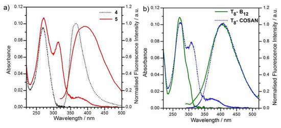 - Cabrera-Gonzlez, J.; Ferrer-Ugalde, A.; Bhattacharyya, S.; Chaari, M.; Teixidor, F.; Gierschner, J.; Núñez, R. Fluorescent carborane-vinylstilbene functionalised octasilsesquioxanes: Synthesis, structural, thermal and photophysical properties. J. Mater. Chem. C 2017, 5, 10211–10219. [Google Scholar] [CrossRef]