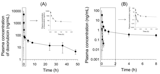 - Xie, Y.; Shao, N.; Jin, Y.; Zhang, L.; Jiang, H.; Xiong, N.; Su, F.; Xu, H. Determination of non-liposomal and liposomal doxorubicin in plasma by LC-MS/MS coupled with an effective solid phase extraction: In comparison with ultrafiltration technique and application to a pharmacokinetic study. J. Chromatogr. B 2018, 1072, 149–160. [Google Scholar] [CrossRef]