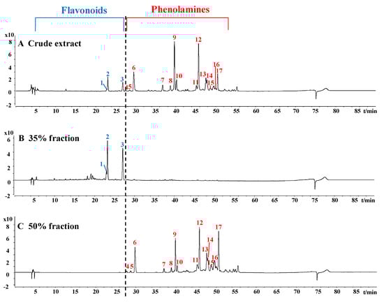 4.3. Separation of Phenolamines and Flavonoids From Crude Extract