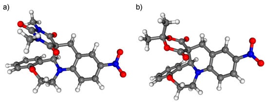 (a) Lowest-energy conformers of (S)-10a (99.1% population) and (b) (S)-11a (>99.9% population). Level of DFT optimization: CAM-B3LYP/TZVP PCM/n-octanol.