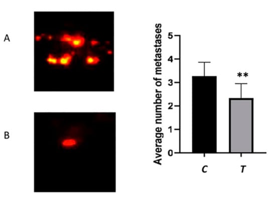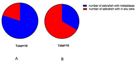 In addition, the average number of metastases was 3.3 for untreated zebrafish, while the number of metastases was 2.3 in BEL β-trefoil-treated zebrafish (Figure 5).