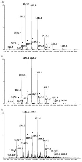 - Dalabasmaz, S.; Dittrich, D.; Kellner, I.; Drewello, T.; Pischetsrieder, M. Identification of peptides reflecting the storage of UHT milk by MALDI-TOF-MS peptide profiling. J. Proteomics 2019, 207, 103444. [Google Scholar] [CrossRef] [PubMed]