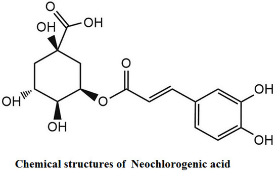 Neochlorogenic acid (nCGA, purity >98%) was isolated from mulberry leaf (Morus alba L.), and the chemical structure was identified in our laboratory [45] (Figure 7). A 10 mM stock solution of nCGA was prepared in dimethyl sulfoxide (DMSO).