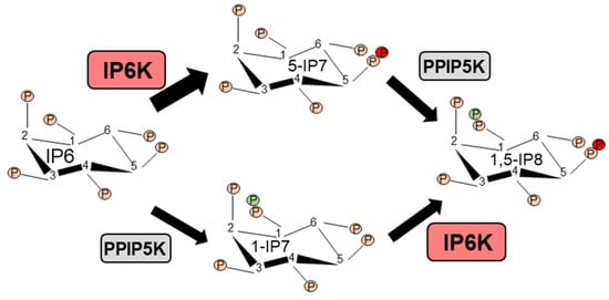 - Chakraborty, A. The inositol pyrophosphate pathway in health and diseases. Biol. Rev. Camb. Philos. Soc. 2018, 93, 1203–1227. [Google Scholar] [CrossRef] [PubMed]