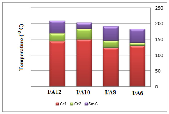 - Ahmed, H.; Naoum, M.; Saad, G. Mesophase behaviour of 1:1 mixtures of 4-n-alkoxyphenylazo benzoic acids bearing terminal alkoxy groups of different chain lengths. Liq. Cryst. 2016, 43, 1259–1267. [Google Scholar] [CrossRef]