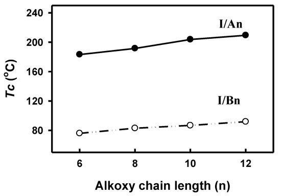 - Bennett, G.M.; Jones, B. 94. Mesomorphism and polymorphism of some p-alkoxybenzoic and p-alkoxycinnamic acids. J. Chem. Soc. 1939, 420–425. [Google Scholar] [CrossRef]