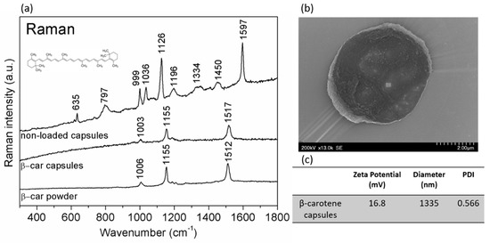 Leopold, L.F.; Marișca, O.; Oprea, I.; Rugină, D.; Suciu, M.; Nistor, M.; Tofană, M.; Leopold, N.; Coman, C. Cellular Internalization of Beta-Carotene Loaded Polyelectrolyte Multilayer Capsules by Raman Mapping. Molecules 2020, 25, 1477. https://doi.org/10.3390/molecules25071477