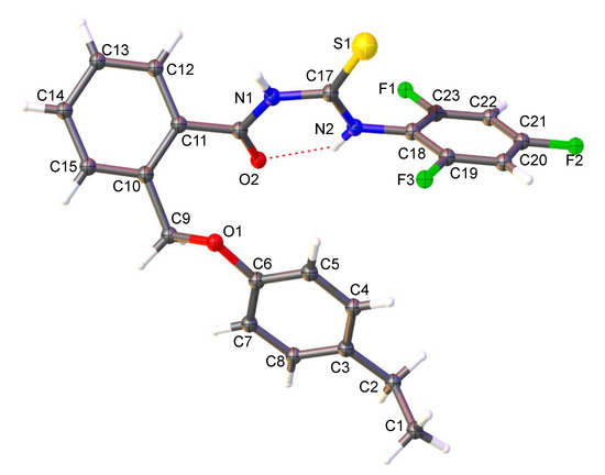2-((4-Ethylphenoxy)methyl)-N-(2,3,4-trifluorophenylcarbamothioyl)benzamide (5b) 3.37 g white crystals (yield 76%), mp 107–108 °C.