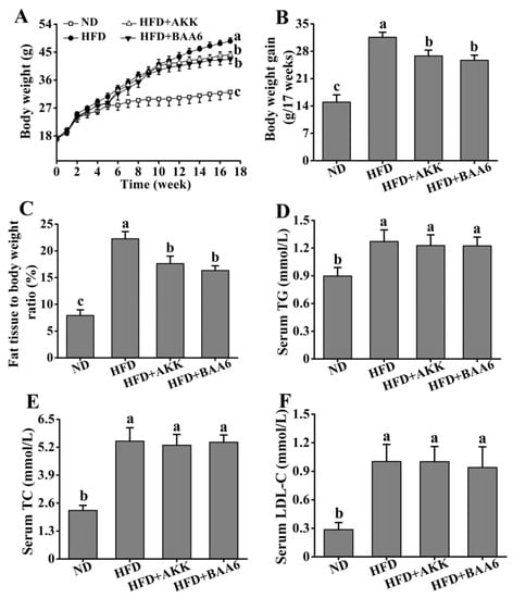 2.2. BAA6 Affected Lipid Metabolism of Obese Mice